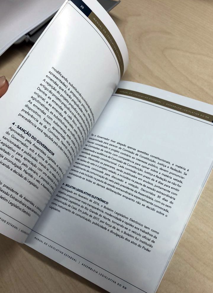 Quando iniciar a 62ª legislatura nesta sexta-feira (01/02), a Assembleia Legislativa do Rio Grande do Norte lançará o Manual Legislativo Estadual, produzido pela primeira vez pela Casa ao receber novos integrantes. O Manual traz em detalhes, em linguagem clara e simples, as regras sobre elaboração, redação, alteração e a consolidação das leis, além das normas do Regimento Interno sobre audiências públicas, sessões solenes, entrega de títulos e reconhecimento de instituições.